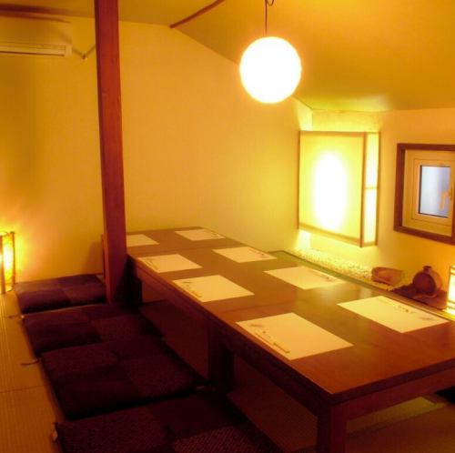 8名までの個室。宴会予約受付中!!和の個室は、間接照明の灯りが照らす落ち着いた雰囲気。ゆったりとしたテーブル席で、会社のご宴席や接待、ご会食などにオススメです。ご予約はお早めにお願いいたします。お気軽にお問合せ下さいませ。